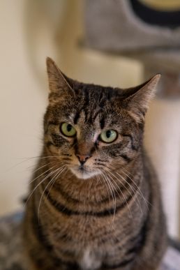 Hannes kam sehr mager und geschwächt bei uns an und musste erst einmal wieder aufgepäppelt werden. Leider hat er einen innenliegenden Penis, weshalb er beim Urin ablassen teilweise das Klo nicht so gut trifft. Dieses kann man mit einem großen Haubenklo aber gut lösen, dennoch sollte man nicht ganz empfindlich sein, falls es doch mal nicht klappt. Hannes ist sehr verschmust und lässt einen die Quarantänebox gar nicht sauber machen, da er so um eine paar Streicheleinheiten und Aufmerksamkeit kämpft. Er wäre durchaus für einen turbulenteren Haushalt geeignet und würde sich über Freigang freuen, dann könnte er seine Geschäfte auch draußen verrichten. Hannes erzählt sehr gerne und ist wahnsinnig anhänglich.