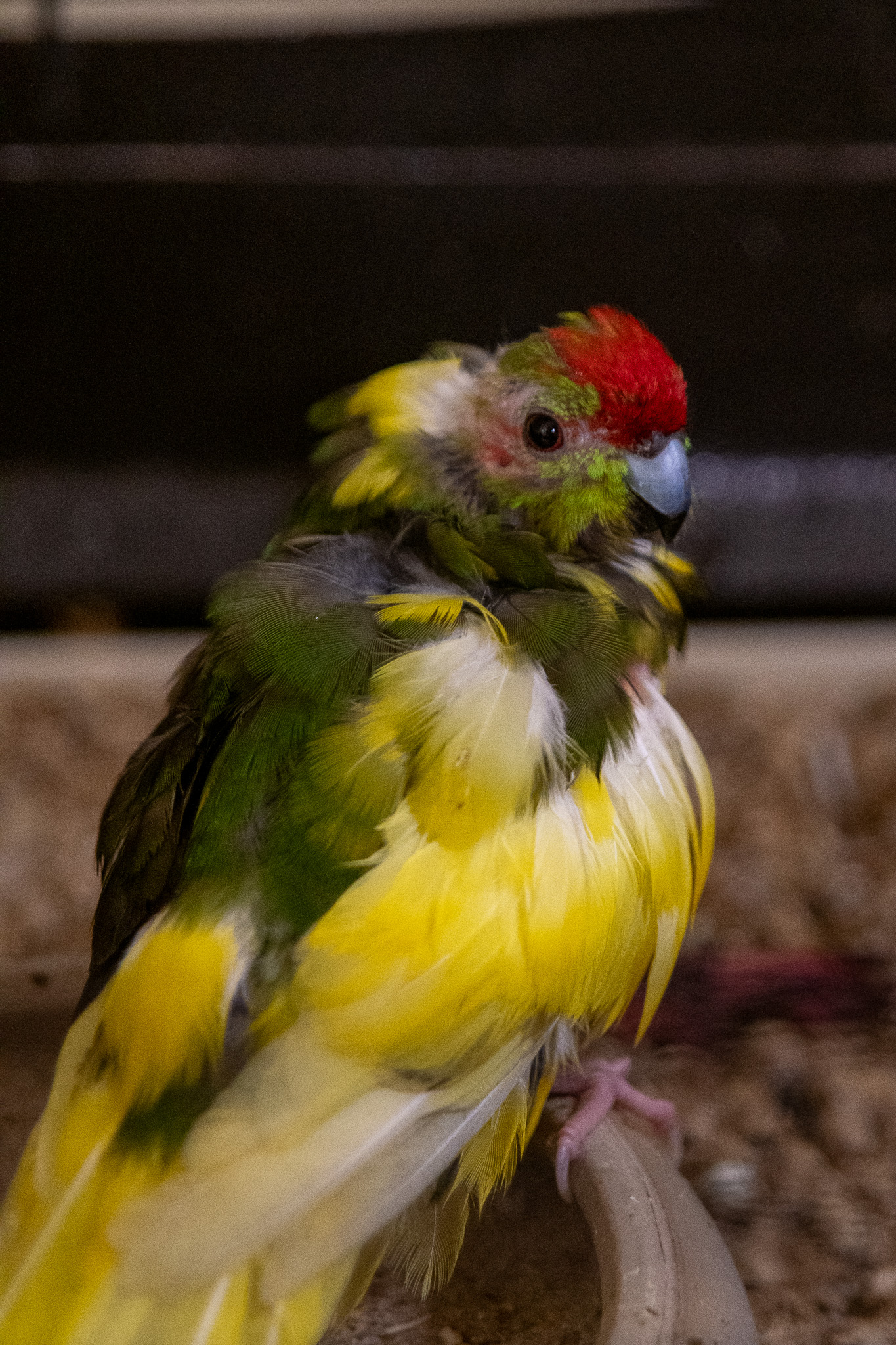 Kaveh kam als Fundvogel zu uns, nachdem eine Katze ihn gefangen hat. Er hatte eine Verletzung am Brustbein, die aber mittlerweile gut verheilt ist.