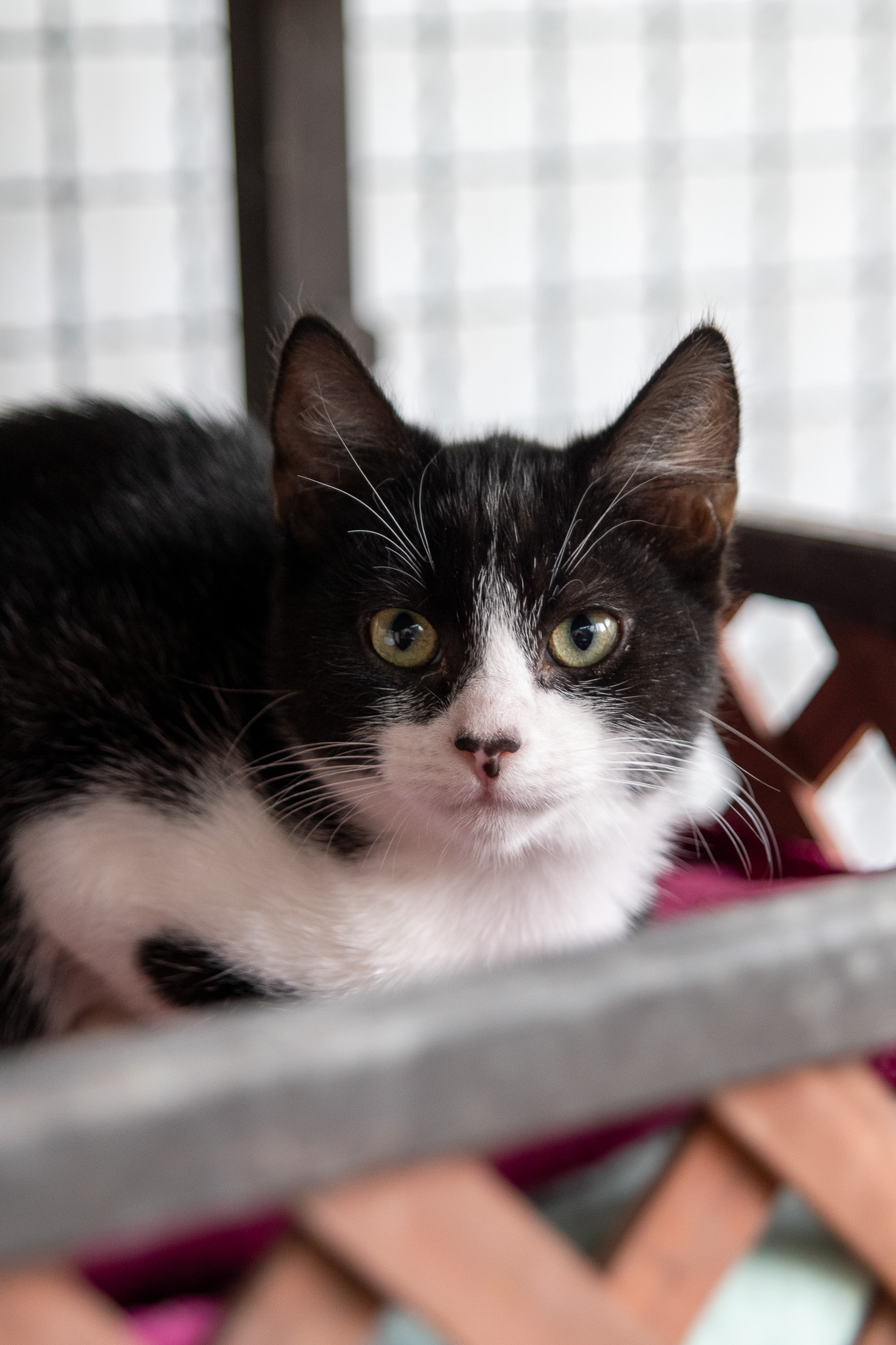 Koralle kam als Fundkitten zu uns mit einer starken Schwanzverletzung. Ihre Rettung war, dass sie gefunden wurde. Der Schwanz musste amputiert werden, dass behindert sie aber nicht. Anfangs ist Koralle etwas schüchtern, wenn sie aber Vertrauen gefasst hat lässt sie sich gerne streicheln.