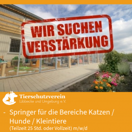 Der Tierschutzverein Lübbecke und Umgebung e.V. sucht eine/n Tierpfleger/in zur Unterstützung unseres Teams zum nächstmöglichen Zeitpunkt als Springer.
