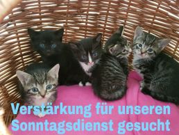 Wir suchen für unseren ,,Sonntagsdienst'' im Bereich Katzen Verstärkung. Ehrenamtliche übernehmen an Sonn- und Feiertagen morgens die Arbeit der Tierpfleger und versorgen die Tiere.