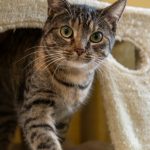 Sie hatten uns ja schon vorgewarnt, dass wir beide und speziell Milan die erste Zeit nicht sehen würden und sie hatten speziell mit Milan recht. Dieser hat sich ganze 3 Tage in der Wäsche in der Ankleide versteckt. Als er dort auch das erste mal seine Notdurft verrichtete haben wir schon befürchtet er würde sich wohl nicht öffnen und wir müssten ihn schweren Herzens wieder zurück geben. Also haben wir ihm diese Versteckmöglichkeit genommen so das er ins Wohnzimmer ausgewichen ist und sich in der Kratztonne versteckt hat.